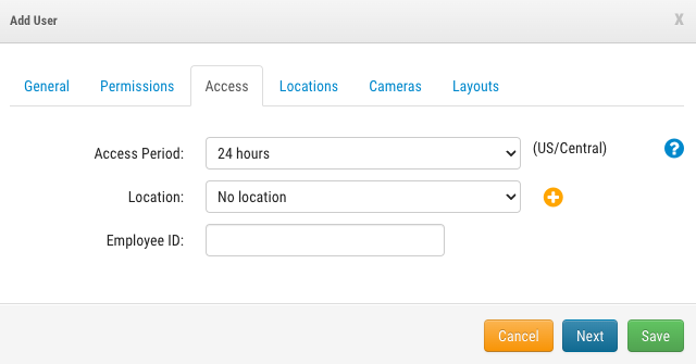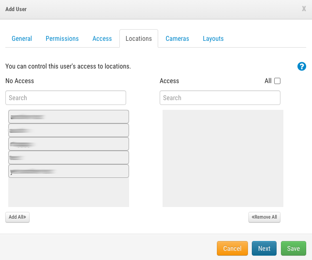 User access can be limited to a specific location in this section. If devices are not tied to locations, this option may not appear.