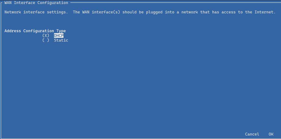 Using the default settings on the WAN will require a network with a DHCP server. If you do not have a DHCP server, or have a static configuration, you will need to adjust the WAN settings.