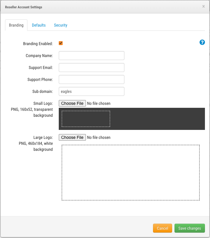 Eagle Eye offers our partners and resellers the opportunity to customize the subdomain and logos in our interface. The logo and subdomain will be present in all subaccount dashboards. This allows end-users to have a more personalized experience in accordance with our resellers' and partners' specific branding.