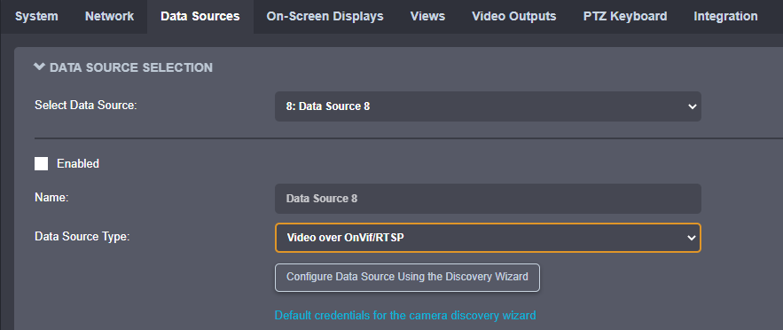 To manually configure the system we will need to add each camera stream one by one. This is done under the Data Sources tab. If the cameras are added via ONVIF the Wizard will make it simple.