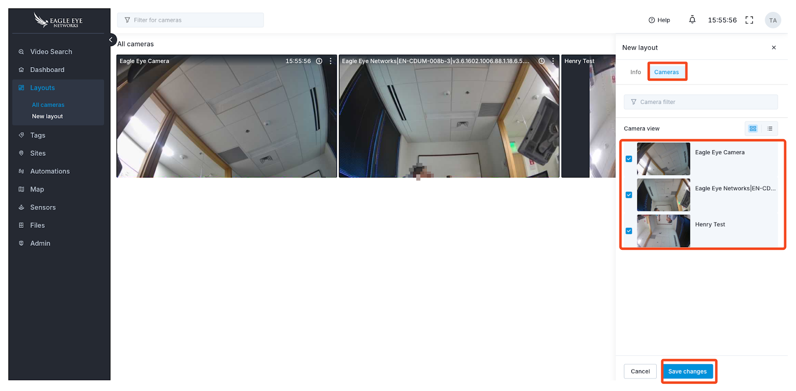 4. Select the camera you want included in the new layout, then click Save Changes. Use the search bar to find cameras for larger accounts.