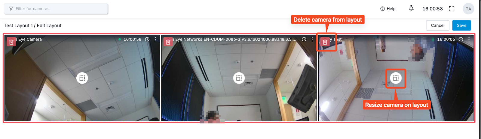 2. You can rearrange, resize, or remove a camera from the layout.